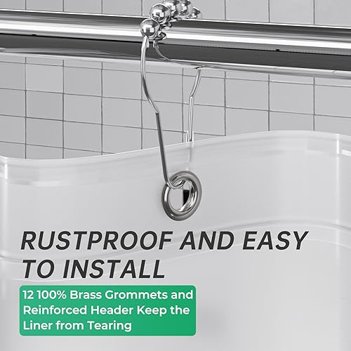 Reliable heavy weight design - This weighted shower curtain liner is designed to last for a long time and keep from tearing. Each clear shower liner provides 12 rustproof metal grommet holes to accommodate standard or decorative shower curtain hooks. The metal grommet holes and reinforced header promote easier hanging and long-lasting strength.