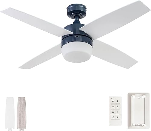 Prominence Home Atlas, 44 Inch Modern Indoor LED Ceiling Fan with Light and Remote Control, Dual Mounting Options, Dual Finish Blades, Reversible Motor - 51629-01 (Sapphire Blue)(Blue,CR2032 Batt Remote)