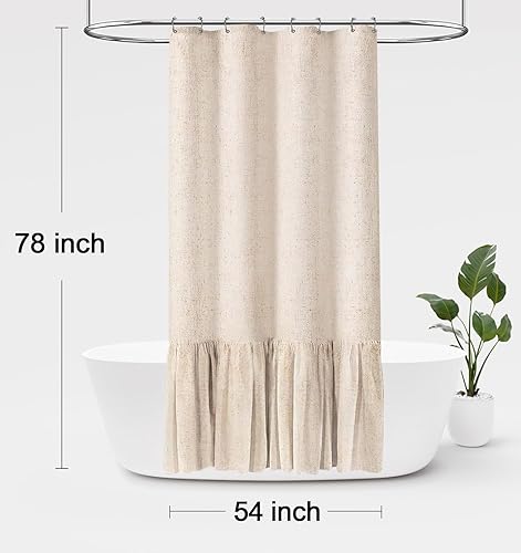 Awellife Farmhouse Shower Curtain Ruffle Linen Textured Boho Shower Curtain for Bathroom, Beige 72" W x 72" L(Beige,54"W x 72"L)
