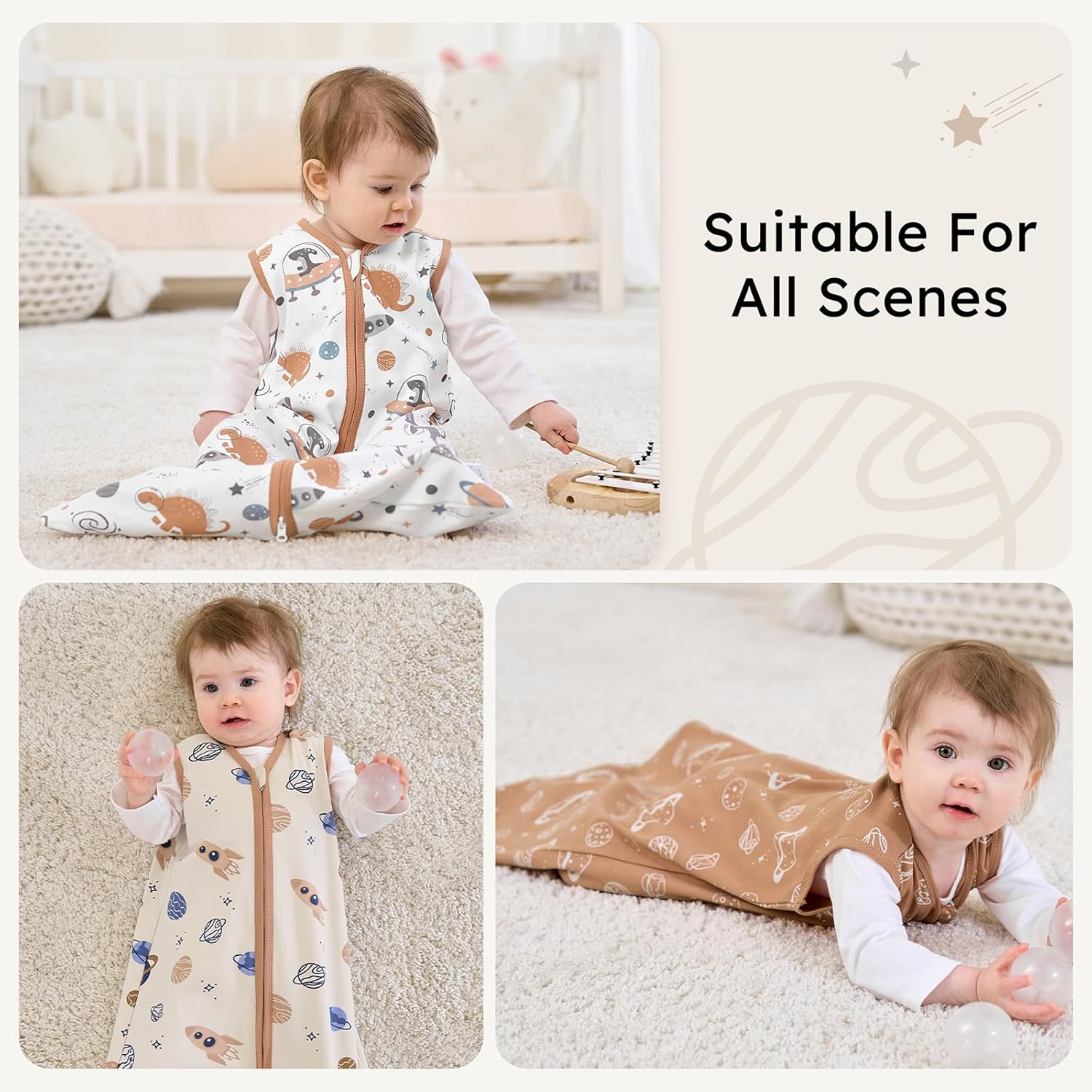 • 100% Cotton: Made from 100% cotton, our baby sleep sack applys top 10% of the premium cotton, which is more breathable and soft on delicate skin. 0.5 tog fit for moderate seasons. With this wearable blanket, your baby would neither get sweaty nor catch a cold.