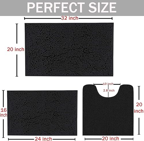 【PERFECT Bathroom Mats Set 3 Piece】Our 3 pieces bathroom rug set includes 1 Small bath rug 16"x24", 1 u-shape toilet mat 20"x20", 1 large bath mat 20"x32". Chenille material, Pamper your feet! Our bath mat set features a luxurious, Thicker, and better constructed than most other rugs, Suitable for hotels, sauna, shower, gym for bathroom, bedroom, dining room, living room, and so on.