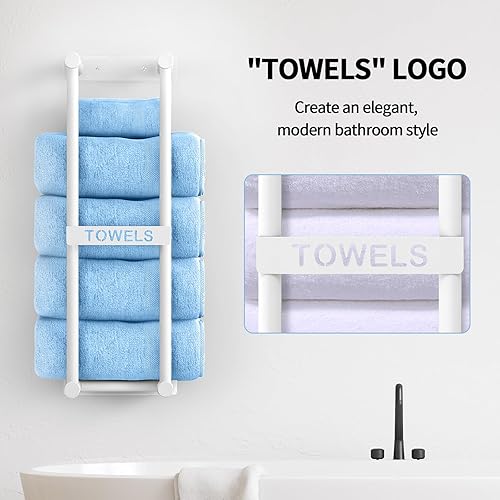Bathroom Towel Storage Rack, Towel Racks for Bathroom Wall Mounted 30 inch with Shelf Can Holds 6 Large Towels, Wall Towel Rack for Rolled Towels, Black(White,22 IN)