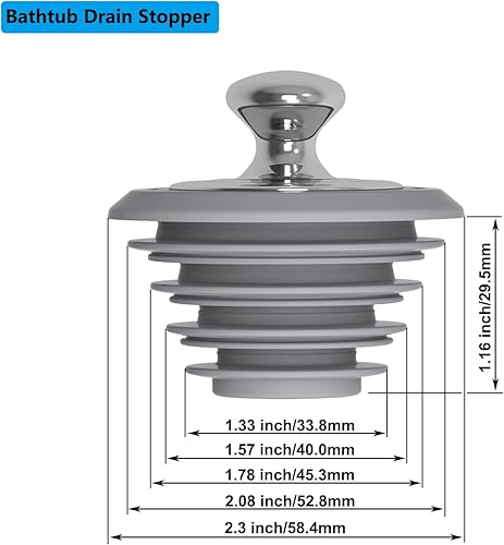 Versatile: This drain stopper is suitable for most bathtubs,sinks and washbasin drains (1.2 inch~2.0 inch inner diameter,Drain Depth:Greater than 1 inch), [Note:Does not fit at all Size Drain . Please be sure to measure the Tub Drain before ordering].