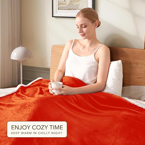 BEAUTEX Sherpa Fleece Throw Blankets, Soft Fluffy Flannel Plush Blanket and Throw, Fuzzy Cozy Grey Cuddle Blankets for Couch Bed Sofa Adults (50" x 60", Grey)(Orange,Throw-50"x60")