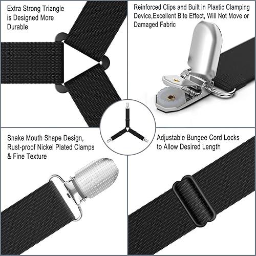 UPGRADED MATERIALS: Enhanced with wider, thicker elastic straps and sturdy chrome-plated metal clips for long-lasting durability and resistance to deformation; Built-in silicone pads securely anchor sheets while protecting fabric from damage