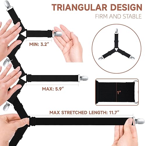 Stable Triangle Design: The set includes 4 pcs triangle-shaped straps to securely hold each corner of your sheet in place, ensuring non-slip tidiness in your bed.