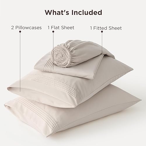 What You Can Get: This queen sheet set includes one flat sheet (90" x 102"), one fitted sheet (60" x 80"), and two pillowcases (20" x 30")