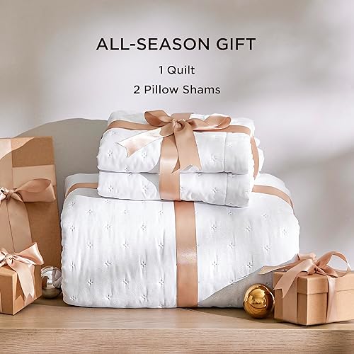 Bedsure Quilts Queen Size - Ultra Soft Quilt Bedding, White Bedspread Queen Size for Modern Bedroom, Lightweight All-Season Comforter, 90x96 Inch(01 - White - Clover,California King)