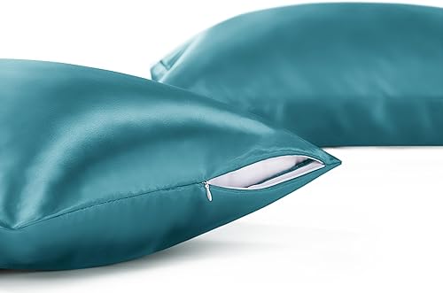 Bedsure Satin Pillowcase with Zipper, Similar to Silk Pillow Cases 2 Pack, Silky & Soft Satin Pillow Case Standard Size for Hair and Skin, Christmas Room Decor Gifts for Women Men, Beige, 20x26 Inches(13 - Teal Blue - Zipper,Queen (20" x 30"),2)