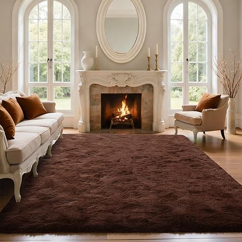 Black Rugs for Living Room Fluffy 4x6 ft Bedroom Rug Non-Slip Area Rugs Shag Carpet for Nursery Kids PlayRoom Dorm Office Indoor Modern Plush Carpets Boys(Coffee Brown,6' x 9' (Rectangular))