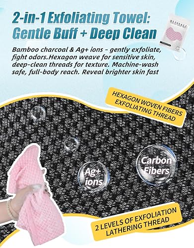 Comment on "BLISSAL Exfoliating Shower Towel 47",Premium Scrub Wash Cloth for Body Face, Exfoliating Washcloth for Men and Woman (Black2)(Black2)"
