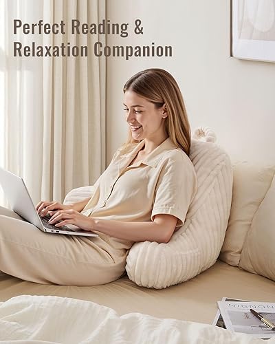 Blissful Diary Reading Pillow for Sitting in Bed, Flannel Back Pillow Bed Sitting Up for Adult & Children, Backrest Cushion for Sit Up in Couch or Floor, Dorm Essentials, Cream White(Cream White,Standard(18inch))