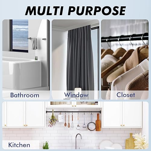 Multipurpose Design: This versatile tension rod can be used as a shower curtain rod, closet rod, hanging rod, or even a curtain rod. Its practical design offers flexibility and convenience, allowing you to utilize it in multiple areas of your home beyond just the bathroom.