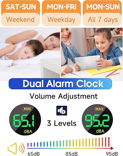 Loud Alarm Clock: Adjustable volume up to 105db with 3 levels, dual alarms, and a 10-minute ringer duration,ok to wake up for really heavy sleepers,adults,teens,kids,making it an ideal teen gift.