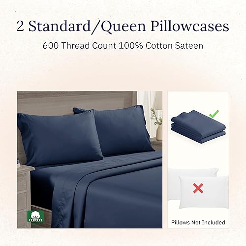 CALIFORNIA DESIGN DEN Luxuriously Soft Hotel Quality 600 Thread Count, 100% Cotton Set of 2 Cases, Crisp & Cool White Standard Pillow Cases Fits Standard & Queen Pillows (Bright White)(12 - Navy Blue - Royal,Standard / Queen)