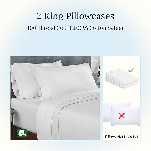 California Design Den Standard Queen Size Pillowcase Set - 400 Thread Count, 100% Cotton Sateen, Set of 2 Pillow Covers, Breathable, Cooling, Soft for Quality Sleep - Bright White(02 - Striped White,King)