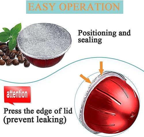 Easy to operate: Using a small sciccors to remove the used vertuoline foils. Clean and fill your fine grind coffee. Place the foil lids on the rim and then gently press around the rim to seal Nespresso vertuoline or vertuoplus pods