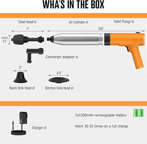 Comment on "cauzyart Toilet Plunger, Electric Sink Plunger for Bathroom, Rechargeable High Pressure Toilet Snake Drain Clog Remover with Holder for Bathroom, Floors, Shower(Orange)"
