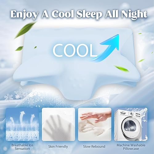 【Breathable Cooling Pillowcase】The sleeping pillow features a high-quality double-layer pillowcase that is soft and fits snugly with the pillow core, with 3 times the breathability of other contour pillow. It is removable with a zipper, machine-washable. The pillowcase is made of COLD SILK TECHNOLOGY FABRIC, perfectly fitting the skin, with soft and cooling fabric that keep you cool all night long-allowing the skin to breathe and have a dry night! Give you the comfortable sleep you want!