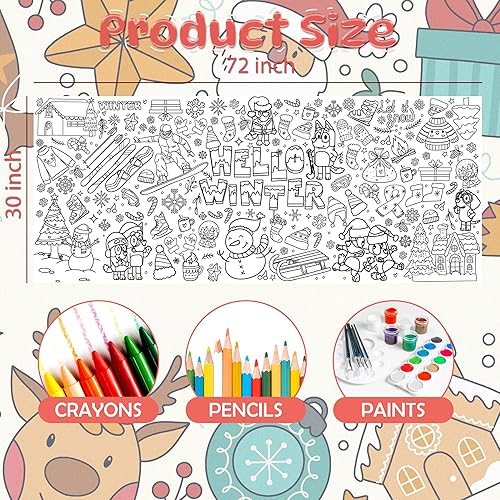 [Reliable Quality for Christmas Fun]Measuring 30*72 inches, this Christmas coloring tablecloth is crafted from thick paper. It offers reliability with clear printing, resisting breakage, tearing, and fading, ensuring a delightful and long - lasting using experience during Christmas activities.