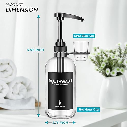 Comment on "Clear Glass Mouthwash Dispenser with Black Cup Holder and Pump, 16 Oz Rustic Boho Mouthwash Dispenser for Bathroom Farmhouse Decor - 1 Pack"