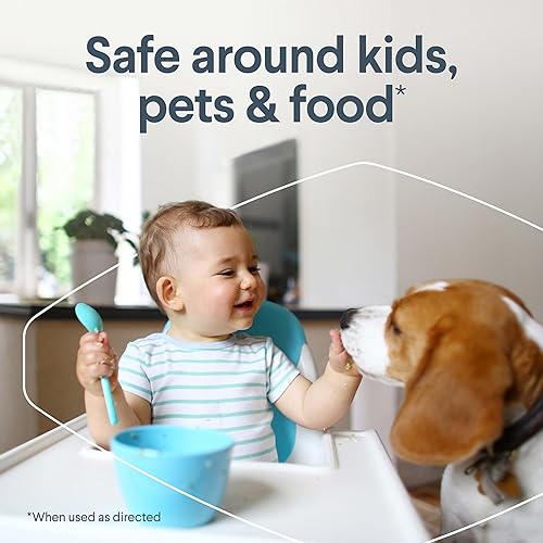 SAFE AROUND KIDS, PETS AND FOOD*: This all purpose cleaner is great on kitchen surfaces, changing tables, high chairs, pet bowls and pet crates, and bathroom surfaces, all with no rinse required