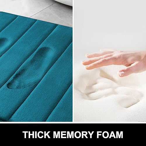 Colorxy Memory Foam Bath Mat 30x20, Ultra Soft and Absorbent Bathroom Rugs, Non-Slip, Machine Wash Dry, Thick Bath Rug Carpet for Bathroom Floor, Sink and Shower, Dark Grey(Peacock Blue,24" x 20")