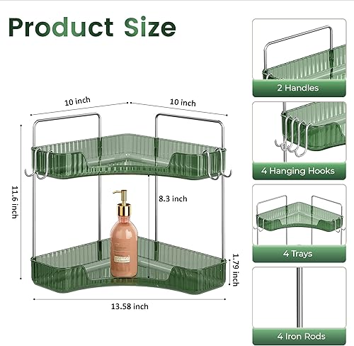 Corner Bathroom Counter Organizer 2 Tier Bathroom Organizers and Storage Countertop with Hooks Skin Care Exquisite Vanity Organizer Countertop Bathroom Storage Dresser, Kitchen-Clear(Green,2 Tier)