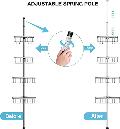 Comment on "Corner Shower Caddy Tension Pole: Adjustable Rustproof 4-Tier Inside Bathroom Organizer - 47-121 inch Quick Installation Bathtub Shelves for Shampoo Storage - Rod Floor Standing Bath Rack - Black(Silver)"