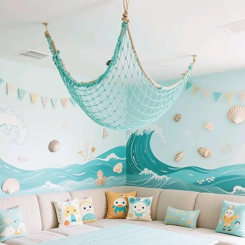 • Party Decorative - Fishnet for decorative party decorations. Perfect for any hawaii, pirate wall backdrop, nautical fishnet decoration, undersea party decoration, sea life banner, adult fishing party accessories, sea animal baby shark, luau, tropical, summer, swimming pool, desert themed bachelor party, mermaid boys and girls Themed birthday party supplies or baby shower decorations. or hang it up to give any room a more nautical feel.
