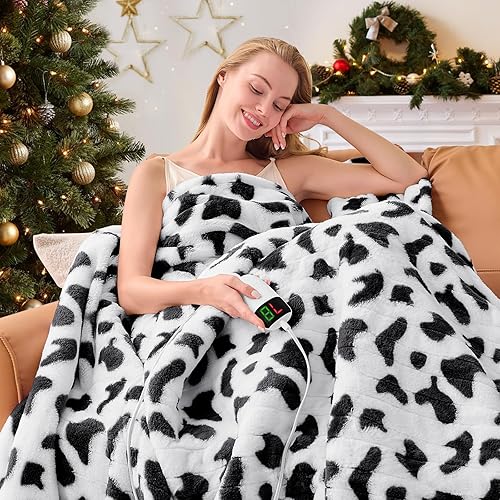 COMFORTABLY WARM AND EFFICIENT: The cow print heated blanket throw will have you experiencing fast with over 85% heat coverage, even warmth in just a short while, so you can feel consistently cozy on those harsh winter days. The advanced heating system of the cow print blanket eliminates cold spots while distributing warmth uniformly across the surface, ensuring no area feels or neglected. It can save more money than battery operated heated blanket.