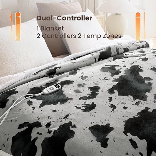 Comment on "Cow Print Heated Throw Blanket Electric Blanket-Heating Blanket Throw with 10 Heat Levels & 10 Hours Auto Off, Cozy Soft Fleece Sherpa, Washable, 50 x 60 Inches Cow Print White(02 - Black Ombre-grey,King 90" x 100")"