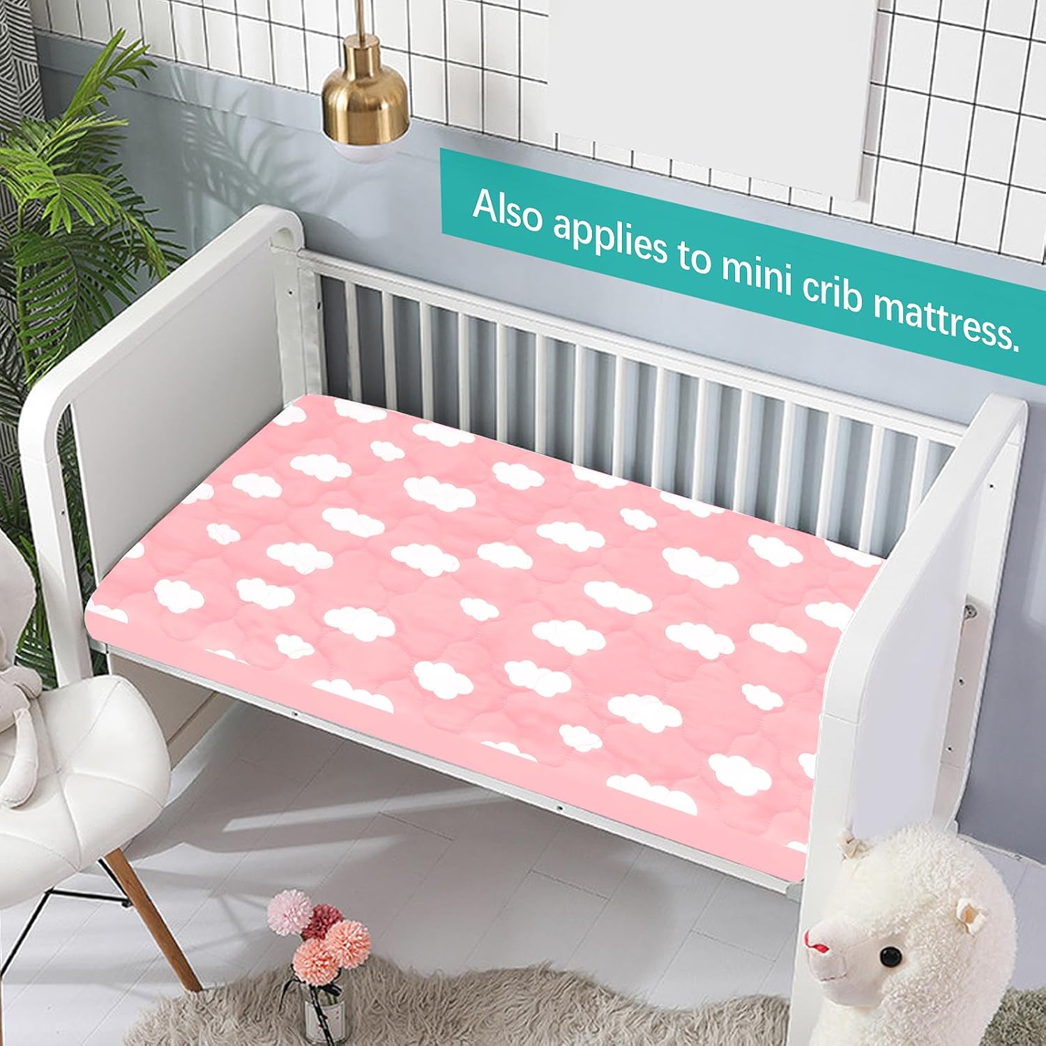 Crib Mattress Protector Sheets Fitted Waterproof Crib Mattress Pad Cover, Noiseless & Machine Wash 100% Absorbent Crib/Toddler Mattress Protector Sheet Quilted, White, 52" x 28"(Pink Cloud,39 X 27 Inch,1)