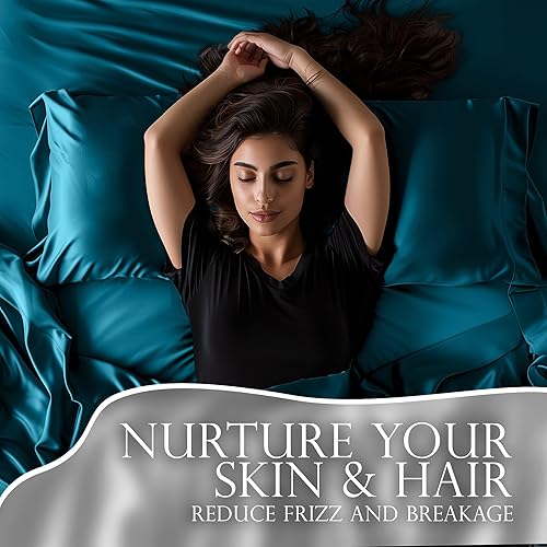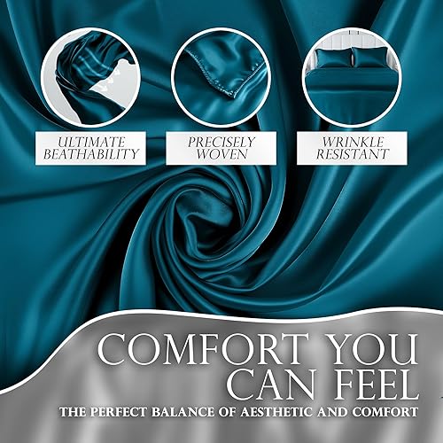 DECOLURE Satin Bed Sheets - 4 Piece Luxury Silky Queen Size Bedding Set - Softer Than Silk, Wrinkle-Free with 15” Deep Pocket Fitted Sheet, Perfect for Hair & Skin, Gifts for Women (Black)(Sea Teal,King)