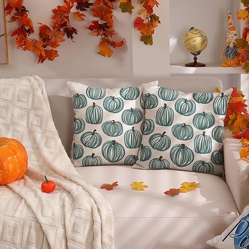 DFXSZ Fall Pillow Covers 18x18 inch Set of 2 Fall Decoration White Thick Lines Pumpkin Decor Orange Autumn Outdoor Pillow Cover Thanksgiving Decoration for Home Couch 118C(Bluegreen,20" x 20" (Pack of 2))
