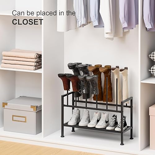 [Versatile Boot Storage] This boot rack holds up to 6 pairs of various boots, including tall knee-high, hiking, riding, rain, and work boots. Its capacity fits most homes as a boot storage solution