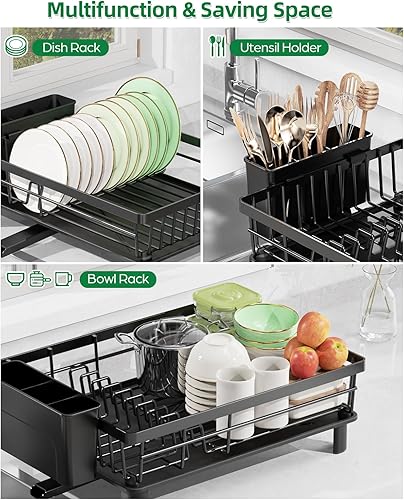 【Easy to Install, No Tools Needed】 Assemble the draining rack in seconds with no screws or tools required. All accessories are removable and can be positioned in any direction.