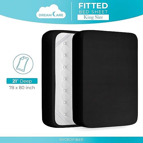 DREAMCARE King Fitted Sheet Only - Extra Deep Pocket Fitted Sheet - Fits up to 21 inch Mattress - Deep Pocket King Sheets - Hotel Luxury - Oeko-Tex Certified Sheets - (Grey)(01 - Black,King - Extra Deep)