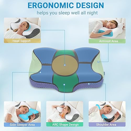 Ergonomic Design: A cpap pillow for side sleepers achieves the perfect balance of support and comfort, the curve and height of each area in the neck pain pillow is ergonomically shaped and designed to keep your head, neck and spine aligned with even pressure distribution. It enables you to dream deeper and promotes healthy sleep