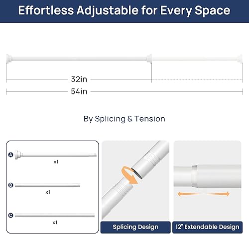 【Multipurpose & Practical】Whatever you need a small curtain rod for a cozy window nook, a sturdy shower curtain rod for your bathroom, a closet rod to organize your clothes, a room divider to create private spaces, or even a kitchen utensil hanging rod for extra storage, this tension rod does it all.