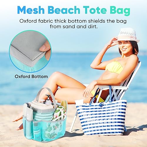 Reinforced Shower Bag Base:Unlike other shower caddies with mesh bottoms, our shower tote bag features a base made with Oxford fabric, providing more substantial wear and tear resistance that even filling the bag to full won't damage the bottom. Shelter the inside from sand or dirt.