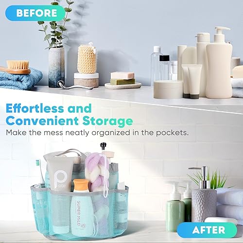Quick Dry, Easy Clean:Quickly get access to the needed item stored in the portable shower caddy. Breathable mesh fabric is the perfect choice for shower bags, which drains water away easily and dries up quickly. Wash and dry the shower bag at any dry and ventilated place to prolong the lifespan.