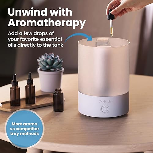CUSTOM MIST LEVELS AT YOUR FINGERTIPS: Choose from three adjustable mist levels with our easy touch feature - high, medium, or low - for custom humidity control that adapts to your needs. Use for bedrooms, as a baby humidifier for nursery - these diffusers even work for indoor houseplants or living rooms. This ultrasonic humidifier delivers the right amount of cool mist exactly where you need it. Helps with congestion, dry skin, allergies, for a comfortable environment year-round