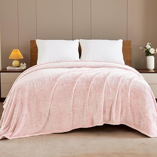 Exclusivo Mezcla Fleece Throw Blanket Extra Large, Super Soft and Warm Blankets for Couch, Sofa and Bed Waffle Textured, Cozy, Fuzzy and Lightweight (Slate Blue, 50x70 Inches)(Mixed Pink,50x70 IN)