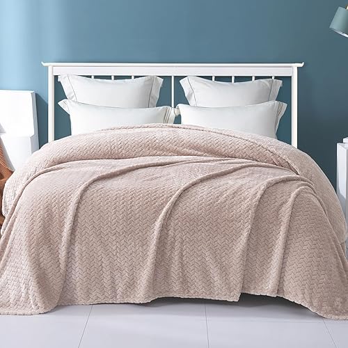 Exclusivo Mezcla Fleece Throw Blanket for Couch, 50x70 Inches Soft Cozy Jacquard Flannel Blankets, Lightweight Fuzzy Plush Warm Throws for Winter, Pink(Camel,King ( 90x104 IN ))