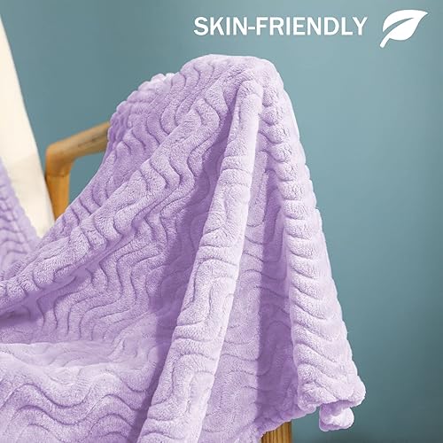 Exclusivo Mezcla Throw Blanket for Couch, Cozy Lightweight Fleece Blankets with Decorative Wave Textured Suitable for Winter, Celadon, 50x70 Inches(Lilac Purple,Queen ( 90x90 IN ))