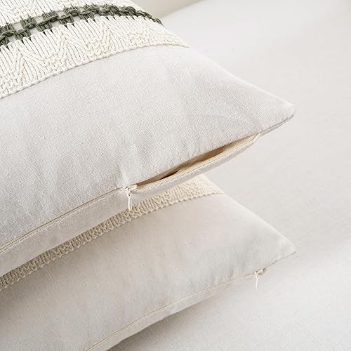 Fancy Homi Set of 1 Sage Green Boho Lumbar Decorative Throw Pillow Covers 12x20 Inch for Living Room Bedroom Couch Bed Chair, Rustic Retro Cushion Case, Bohemian Room Home Decor(Olive Green,18" x 18" (Pack of 1))