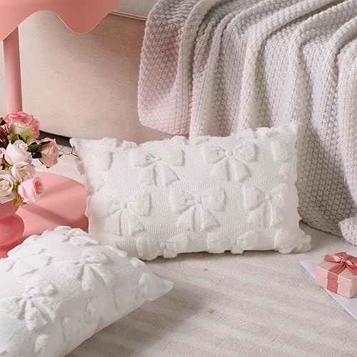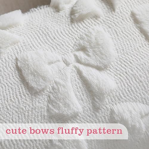 Mixweer Bow Pillow Covers Set of 2 Coquette Room Decor Cute Faux Fur Soft Bowknot Preppy Stuff Fluffy Plush Aesthetic Pillow Covers for Bed Sofa Couch, Fall Christmas Decor (18 x 18 Inch,Pink)(Cream White,11.8" x 10.2" (Pack of 2))