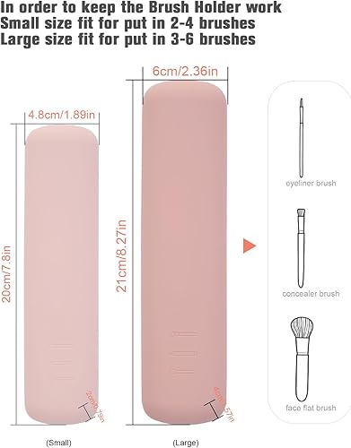 FERYES Large Travel Makeup Brush Holder, Magnetic Anti-fall Out Silicon Portable Cosmetic Face Brushes Holder, Soft and Sleek Makeup Tools Organizer for Travel- (8.27 * 2.36 * 1.57)(Pink,Large)