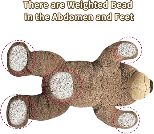 Relaxing:This brown bear weighted plush animal toy provides a calming sensory experience through deep pressure, promoting relaxation and a sense of security. Suitable for fidgety children, it makes a great listener and play companion.